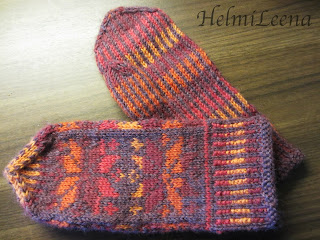 Kevät-talvella jo tein nämä aikuisten lapaset. Olivat hyvä kirjoneuleen harjoitus!