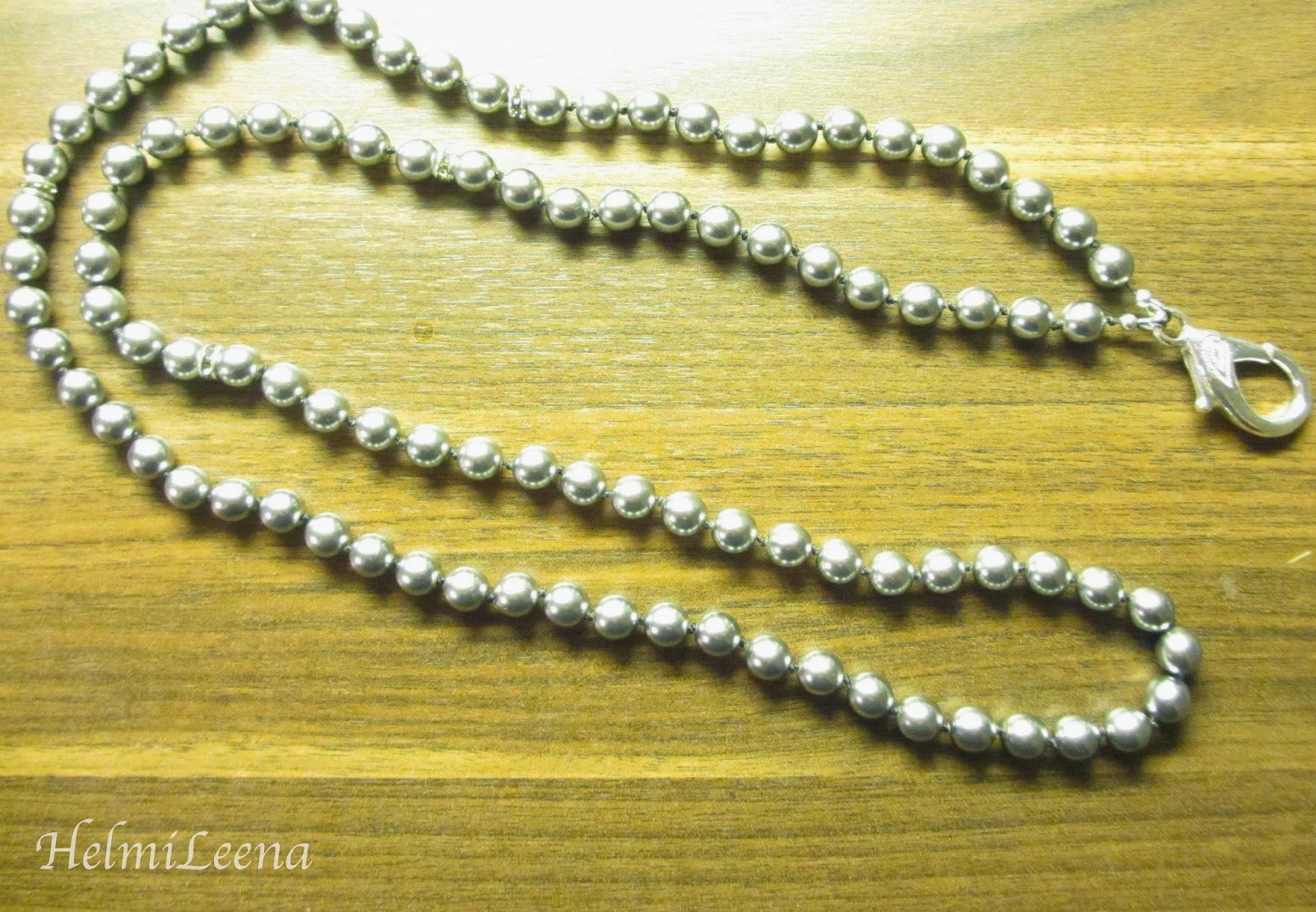 | GREYPEARL Avainkaulakoru harmaista lasihelmistä. Solmu joka helmen välissä. |
